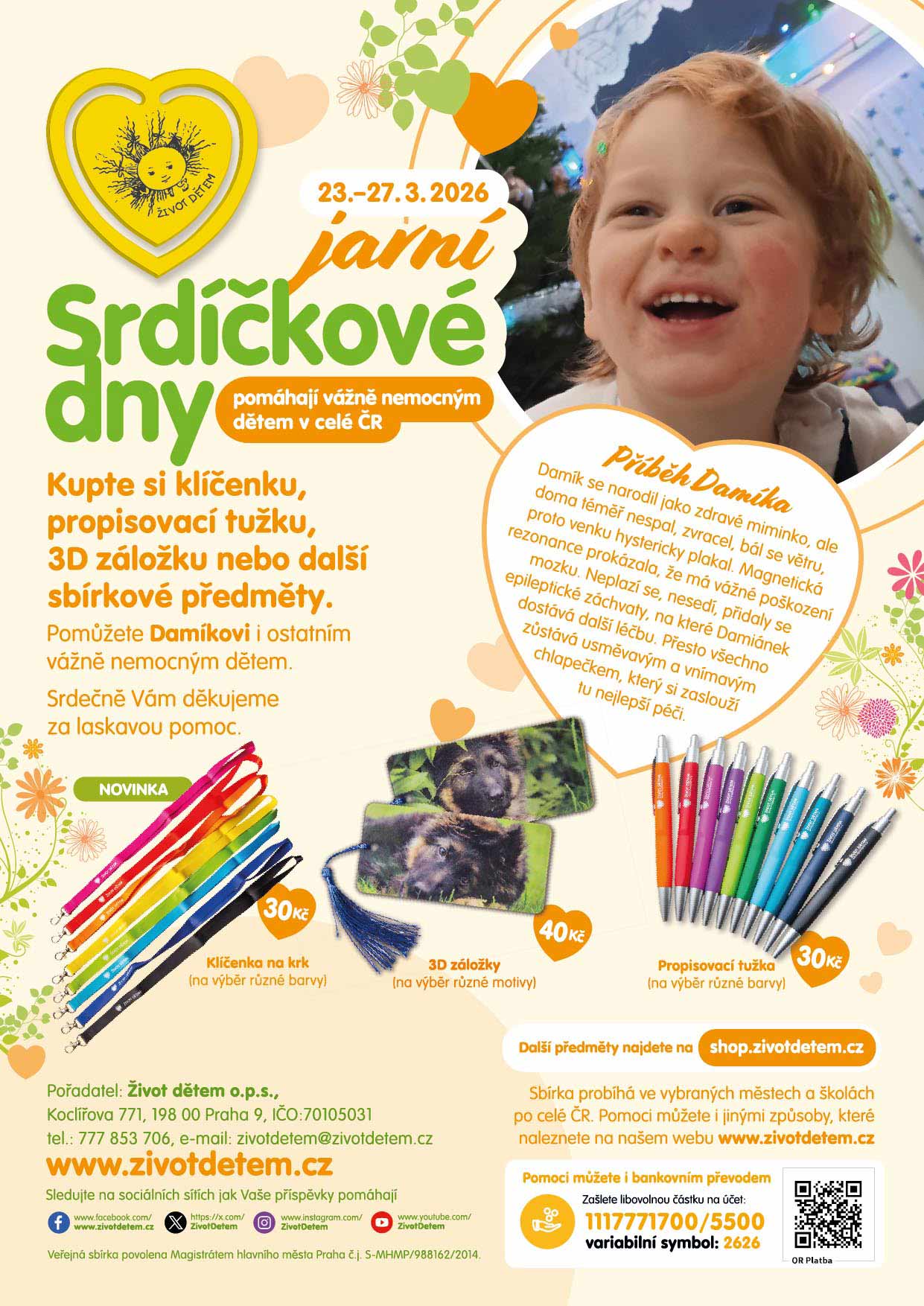 Od 23. 3. do 27. 3. se koná tradiční veřejná sbírka jarní Srdíčkové dny, kterou pořádá obecně prospěšná společnost Život dětem již 26 let. Sbírka se koná na pomoc rodinám s vážně nemocnými dětmi po celé České republice.